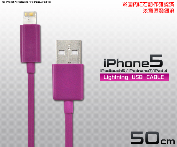 可愛いパープルのLightningUSBケーブルです。