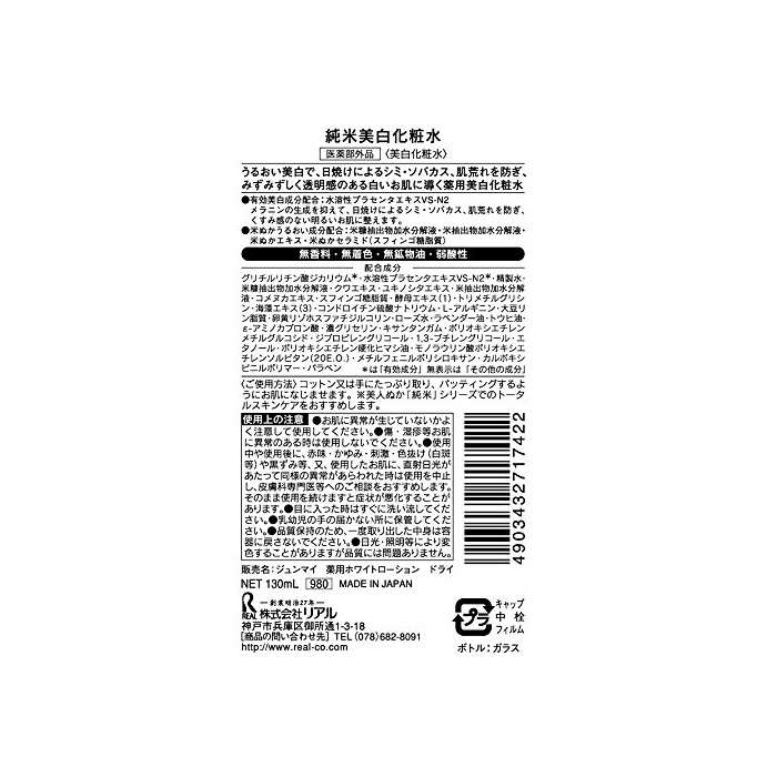 원본상품명: 美人ぬか 純米美白化粧水 (部外品) 130mL