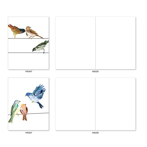 Gather up a flock of these beautiful watercolor bird Blank Note Cards to share your latest news with friends and loved ones. since they are blank inside, they may also be used as invititations or as thank you. These notecards look great framed, too! Try framing them individually, or grouping several in a collage frame, to create visually appealing wall decor.