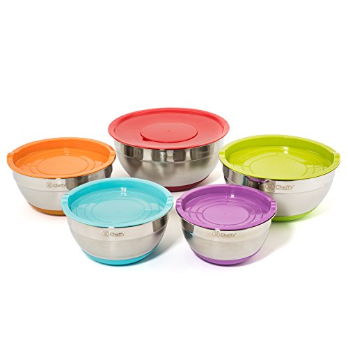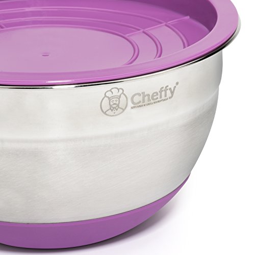 - Feature : PREMIUM QUALITY: Made of durable and recyclable 201 stainless steel, these Cheffy bowls are designed to last. Dishwasher safe, rust-proof, and deform-proof. A lifetime kitchen staple. / MULTI-USE: Fruit storage, cheese grating or batter mixing. Multi-colored lids to keep you organized and 3 grating attachments for your everyday cooking needs / HEALTH FRIENDLY: Cook and eat without the taste of steel nor plastic. Bowls, graters, and lids free of BPA, phthalates, PVC and lead. Safe for children and adults. / STACKABLE & PORTABLE: With its own lid, each bowl can be turned into storing ingredients overnight making it perfect for overnight meat marinades. / WARRANTY: Please contact us if you're not completely happy with this product, you may return the item and we'll give you a full refund for up to 1 year