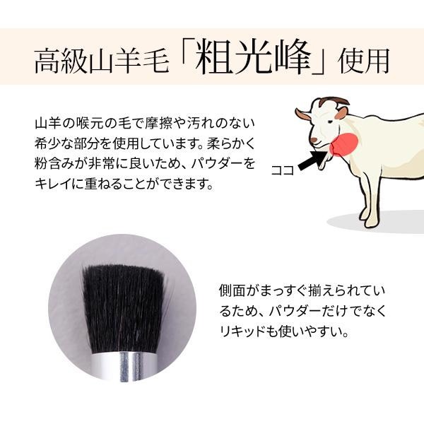 山羊毛の中でも高級な「粗光峰」という喉元の毛で、摩擦や汚れのない柔らかな部分を使用したブラシです。粉含みが非常に良いため、お手持ちのファンデーションでシミを自然に隠すことができます。 |