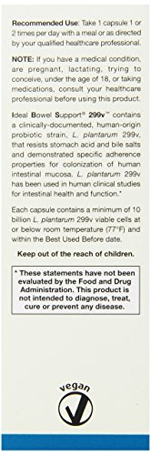 Jarrow Formulas Ideal Bowel Support 299v, Reduces Bloating Gas and Intestinal Discomfort, 10 Billion Cells Per Capsule, 30 Vegetarian Capsules (Pack of 2)