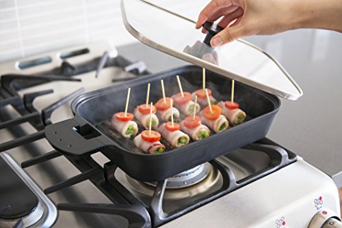 UchiCook's Steam Grill steams and grills food at the same time, which prevents essential nutrients from being stripped during the cooking process and shortens cooking time. It can be used over direct flame, IH, or any other source of high-heat. The high quality Japan-made surface is non-stick and easy to clean. The glass cover allows for a clear view of the contents. Made in Japan.Feature