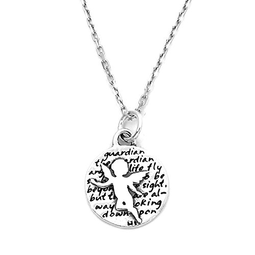 -. Feature : This round, reversible pendant features an angel and reads: the guardian angels of life fly so high as to be beyond our sight, but they are always looking down upon us. / Small Pendant: Sterling silver, 5/8-inch round, double-sided, HandMade in the USA / Sterling Silver Cable Rhodium Chain 16 + 2 Inches / Made in the USA / Complimentary gift packaging