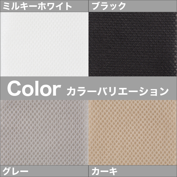 中材(ソフト立体構造編物):ポリエステル100%側地:表/ハニカムメッシュ(ポリエステル100%)裏/ハニカムメッシュ(ポリエステル100%)●その他: