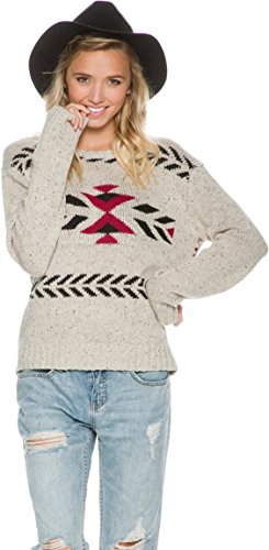 Long sleeve crew neck sweater with jacquard detail