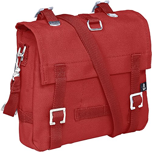 -. Feature : Small army style canvas bag. Ultra portable, lightweight and highly breathable / One main compartment with protective side flaps. Integral inner compartment divider / Main flap with metal D-ring and buckles. Detachable and adjustable shoulder strap / Rear waist belt attachment straps. Side attachments loops. Material: 100% Cotton / Shoulder strap length: 50" (127cm). External dimensions: 8.7"x7.9"x2.4" (22x20x6cm). Weight: 310g