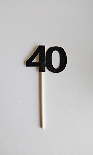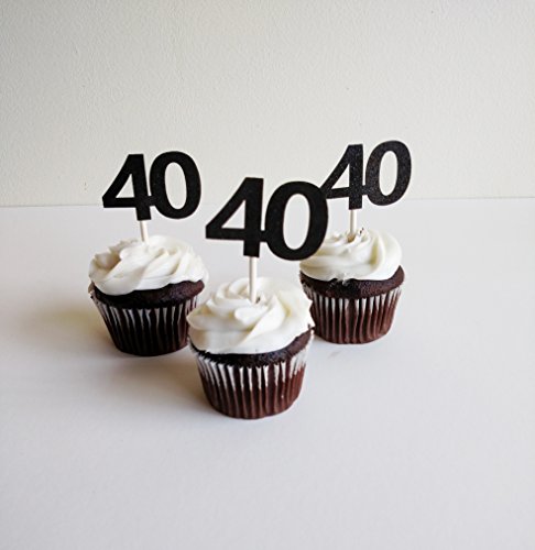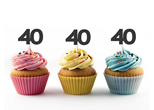 40th Birthday Cupcake Toppers (20 count) Black Glitter - Forty 40 Fortieth Anniversary Party Decoration Retirement