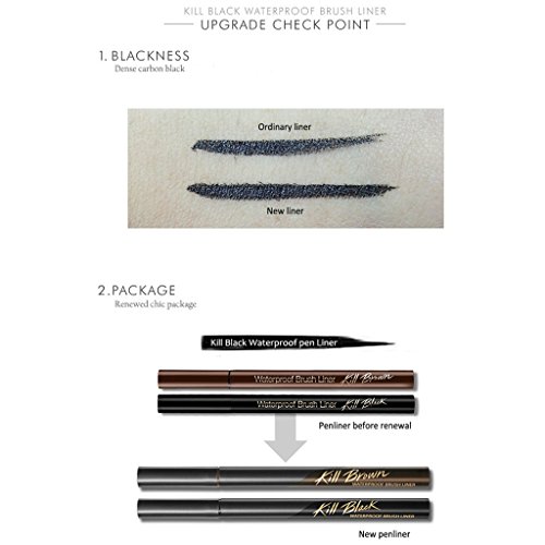Winner of 2014 In Style Magazine Korea's Star Beauty Award, 2011 Marie Claire Korea's Beauty Editor's Pick, 2013 Allure Korea Magazine Best of Beauty, this is a Clio icon and classic that speaks for itself. Clio Professional is a legendary brand respected and loved by makeup artists, beauty editors and consumers alike for its iconic eyeliners and mascaras. The Kill Black and Kill Brown Liner series have been steady bestsellers for years and is considered Korea's bestselling eyeliner of all time. Millions have been sold across Asia for its gorgeous shades of black and brown and amazing application. Be in absolute control with our new and improved formula and airtight lock cap making the Clio Waterproof Slim Brush Liner unbeatable! Formulated with Carbon Black, the Kill Black Slim Brush Liner, comes in a super fine tapered brush tip to create effortless, precision-sharp, delicate, thin lines. Smudge-proof, waterproof, and easy to use and cleanse, it was designed for makeup pros and newbies alike. No flaking, no smudging-this is liquid eyeliner revolutionized.Feature