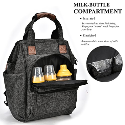 Fully Considering parents demands and comfort elements, this diaper bag is skillfully designed to be convertible from Handbag to Backpack with a special back compartment.Besides,a unique zipper wipe pocket on left side provides a quick access to the wipes/tissues..Also it comes with a big changing pad ,2 sturdy stroller straps and a zipper insulated pouch.