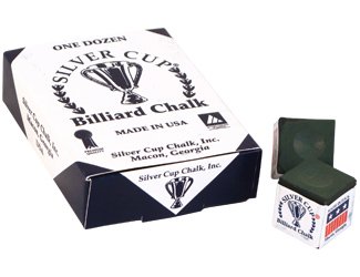 Studio : Silver Cup Publisher : Silver Cup Binding : Misc. Product Description 1 doz. Spruce SILVER CUP BILLIARDS CHALK - Manufactured In Macon, GA - Becoming one of the most popular billiard chalks in the world, Silver Cup is held by many to be the best chalk on the market. Silver Cup chalk is made in Macon, Georgia. We suggest matching your chalk color to your cloth color to keep it looking cleaner longer. Color: Spruce. Quantity: 12 . 0