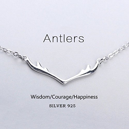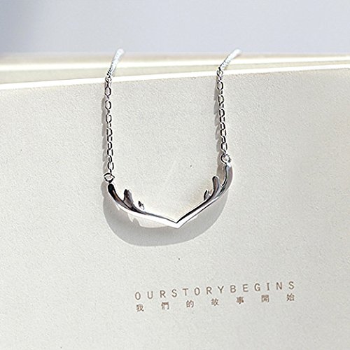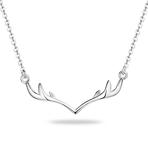 LittleB Elk Antlers Pendant Necklace Christmas Gift.(Silver)