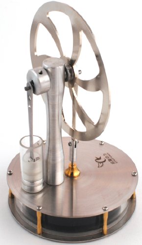 -. Feature : Low Temp Stirling engine, runs on a cup of hot water / Durable, well made, sytlish, and adjustable / Dstar offer parts and FAQ's on this and all there Engines. DSTAR also offers a limited warranty. / It works with hot water, ice water, a combination of hot water with ice cubes, and other heat sources / It measures 5-3/4" tall with a 3-5/8" dia flywheel and a 3-1/2" dia x 7/8" tall base.