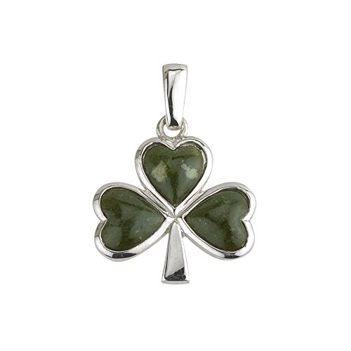-. Feature : An eye-catching sterling silver Connemara marble shamrock charm. / Charm measures approximately 5/8" wide and 7/8" tall. / Add a chain for a lovely shamrock pendant! / Made by Solvar located in Co. Dublin, Ireland.