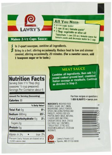 Lawry's Spaghetti Sauce Spice & Seasonings, Original Style, 1.5-Ounce Packets (Pack of 24)