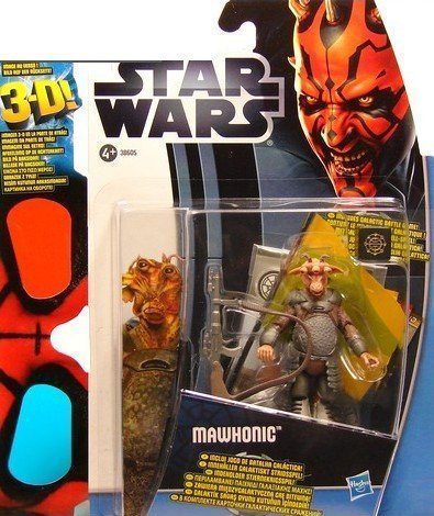-. Binding : Toy -. Brand : Star Wars -. Department : Toys & Games -. EAN : 0653569695653 -. Feature : Includes 3D glasses that you can use on the back of the packaging. -. IsAdultProduct : 0 -. Label : Hasbro -. LegalDisclaimer : Choking Hazard - Small parts. Not for children under 3 years. -. Manufacturer : Hasbro -. Model : 38605 -. MPN : 38605 -. PackageQuantity : 1 -. PartNumber : 38605 -. ProductGroup : Toy -. ProductTypeName : TOYS_AND_GAMES -. Publisher : Hasbro -. Studio : Hasbro -. Title : Star Wars, 2012 Discover the Force, Mawhonic Action Figure #6/12, 3.75 Inches -. UPC : 653569695653
