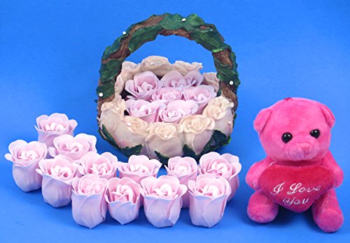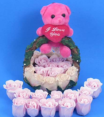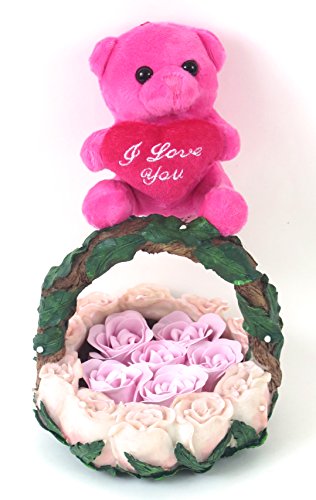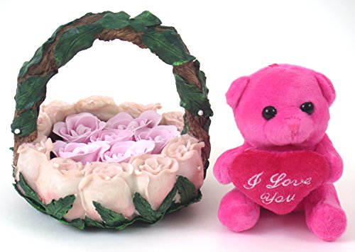 (Cathay International)/Bath/Bath Pearls/Flakes/DIRECT FROM USA/Christmas Rose Bath Bombs basket, includes 6 rose flower bath bombs, and I love You plush Teddy.