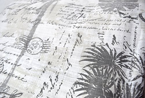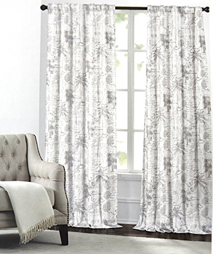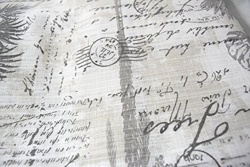 Nicole Miller Vintage Vacation Pair of Curtains in 52 By 96 Inches 100% Cotton Grey Beige Taupe Ivory Set of 2 Window Panels Tropical Palm Trees Letter Script Stamps Hidden Tabs Panels