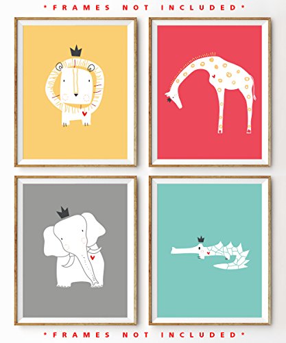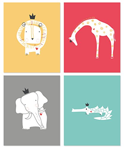 LittleLion Studio Newborn Baby Gift Set Nursery Art Prints Royal Safari 4 Unframed 8”x10” Safari Animals (tuscan)