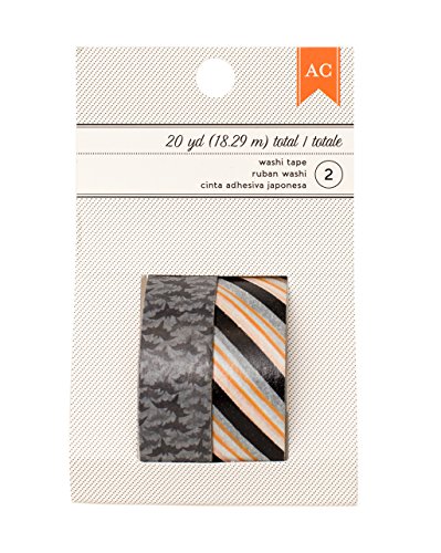 American Crafts Halloween Black & Orange Stripe & Bats Washi Tape, 20 yd