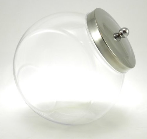 Keep your candy nearby in this cute, old fashion candy jar. With a stainless steel lid, this clear acrylic candy jar will allow you to keep a bag of candy out for everyone to enjoy. You can see exactly what's inside and what piece you want. The opening is large enough for anyone of all ages to enjoy candy from. This candy container is neat, cute and functional.
