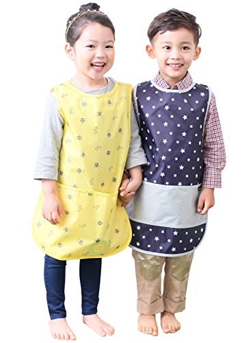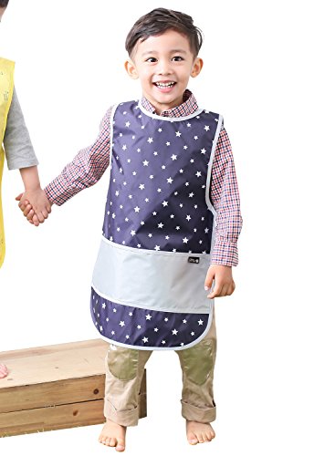 This smock is perfect for messy projects. The smock are perfect for an all over protection and with the waterproof material you can rest easy that you little ones clothes will stay clean. Apron for the ultimate in clothing protection. Features a large catch all pocket for holding art supplies and catching spills. Velcro Back. Sized to fit 2 to 6 years of age.Feature