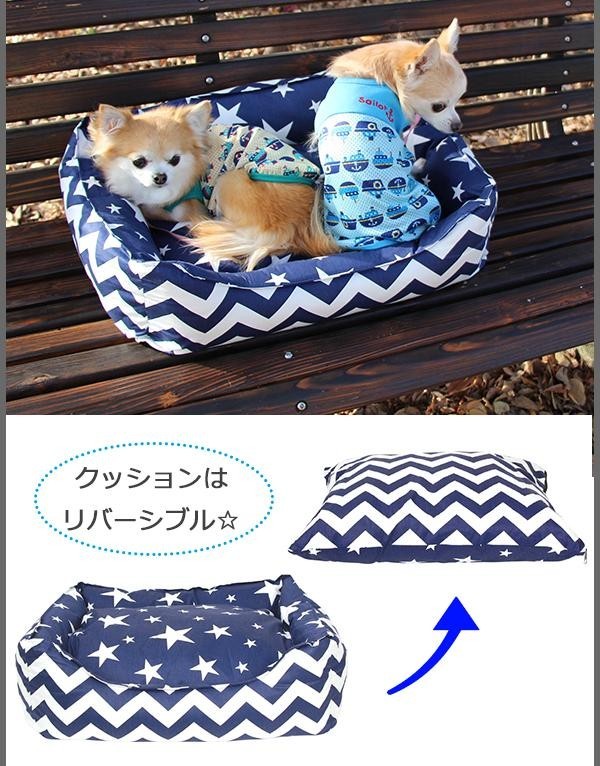 | 鮮やかな色合いでとってもお洒落で可愛いペット用ベッドです。中のクッションはリバーシブル☆また、カバーは取り外して洗うことができます♪ポップなネイビーと涼しげなサックスの2色展開です☆ |