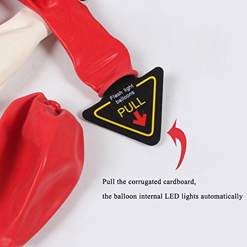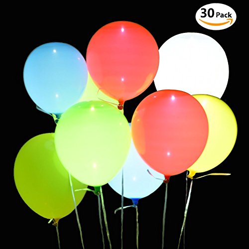 -. Feature : BRIGHTEN UP ANY PARTY WITH LED BALLOONS - These innovative light up led balloons are great for Birthday/Wedding/Christmas party, glow in the dark parties, which is a gorgeous scenery / PULL OUT PAPER TO ACTIVATE SAFE LED BALLOONS - These light up balloons featured with led lights that are properly encapsulated and secured in safe plastic, that is a way that it doesn't cause or trigger health problems / LASTING FOR 8-48 HOURS FOR NON-STOP PARTY - Including 30 Packs mixed colors led balloons,each balloon has a led bulb that works for 8-48 hours (max brightness up to 3 hours),enough time for Christmas/Birthday/Wedding party / COLOR CHANGING LED BALLOONS - Color changing light up balloons flashing like colorful stars in the dark night,surP.R.Ise your guests, colleagues, classmates, with this eye-catching and entertaining glow-in-the-dark, amazing flashing effect that most people have never seen / 100% SATISFACTION GUARANTEE - Please contact us for any issue about these light up led balloons in 7/24, we will try our best to solve the issue for you asap