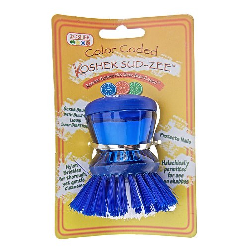 -. Feature : Blue in color and labeled dairy for easy identification / Built in soap dispenser / Twist top for easy refills / Nylon bristles / Halachically permitted for use on Shabbat