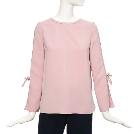 KL, 소매라인 따라 절개된 부분에 시스루로 여성스러우며 더 가늘어보이는 리본 블라우스입니다