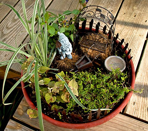 Turn any garden, flowerbed, container plant or terrarium into an enchanted oasis with the Gnome Garden Accessory Kit. The multi-piece kit makes creating a miniature gnome garden easy and fun. Each component is individually painted by hand using fade resistant UV acrylics and is designed to withstand the elements. Grab the kids and start a miniature garden with our Gnome Garden Starter Accessory Kit! Whether you are a veteran miniature gardener or perhaps a novice, you'll be sure to enjoy all the wonderment and fun in this starter kit!Feature