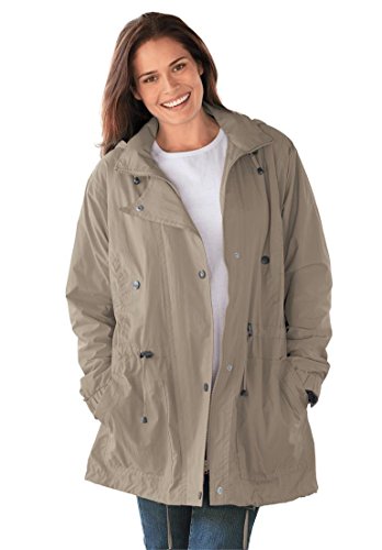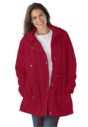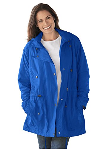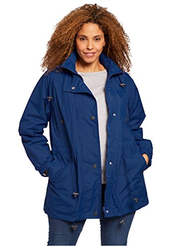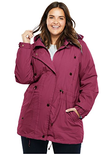 Studio : Woman Within Publisher : Woman Within Binding : Apparel Product Description This water-resistant plus size jacket shields from rain and cold weather and looks perfectly stylish in an exclusive assortment of fashionable colors. Adjustable drawstring with toggle cord stopper creates a subtle waist 32" length provides full coverage Easy button on/off hood has adjustable drawstring Hidden front zipper, four front pockets, elasticized cuffs adjust with snaps, plush anti-pill polyester knit fleece vest lining, back detail with button flap Washable, quick-drying Taslon nylon For a great autumn look, grab a coordinating scarf we also have the perfect tall boots Women's plus size jacket and plus size coat in sizes M(14W-16W), L(18W-20W), 1X(22W-24W),2X(26W-28W), 3X(30W-32W), 4X(34W-36W), 5X(38W-40W), 6X(42W-44W) Read More Wear the shell alone during spring and summer as a raincoat, and zip in the toasty fleece lining to brave the worst of the winter cold. This is the best price and fit in women's plus size jackets and plus size coats that';s why it';s a customer favorite! Why Buy? Customers tell us that they wear this jacket every time they step outside in the cold weather. It is warm, long enough to shield you from the wind and short enough to be comfortable! 0