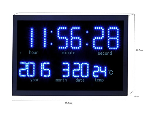 * Easy to setup, it's sleek and modern design. Clock Size 37.5cm x 22.5cm x 4cm. Can be used as wall-mounted or desktop clock. With Auto Brightness Sensor, LED is dimmed when there's enough brightness, and lights up when environment is darkened.