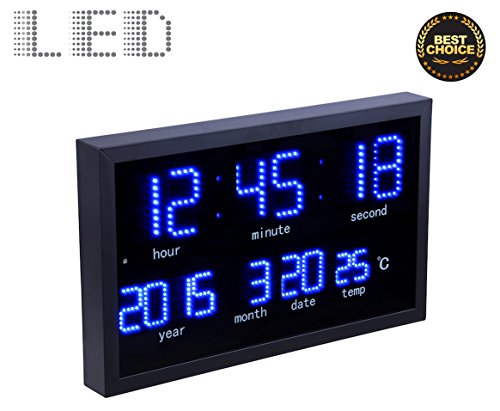 * Clear & Easy-to-read with large 2.5-inch tall time digits, 1.5-inch tall calendar digits and 1-inch tall temperature digits. Bright and high contrast display.