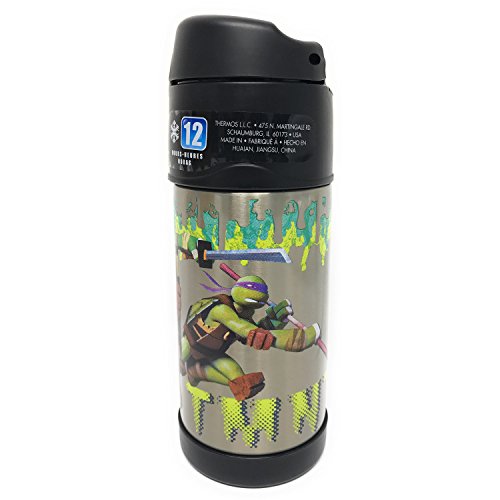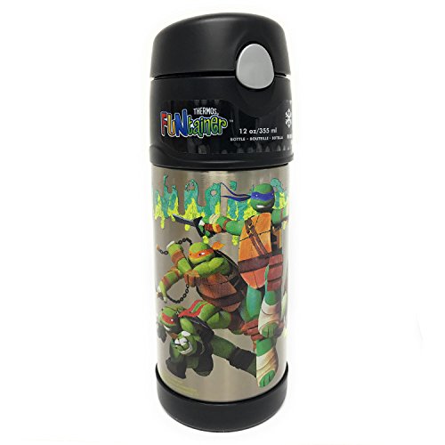 Thermos FUNtainer Teenage Mutant Ninja Turtles Bottle With Straw, Black, 12 Ounces