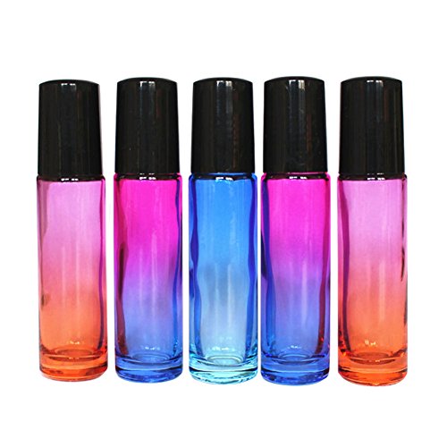 Furnido 6 pcs 5ml 10ml Gradient Color Essential Oil Bottle Colorful Aromatherapy Perfume Roll On Glass bottles With Stainless Steel Roller Ball & Black Cap...