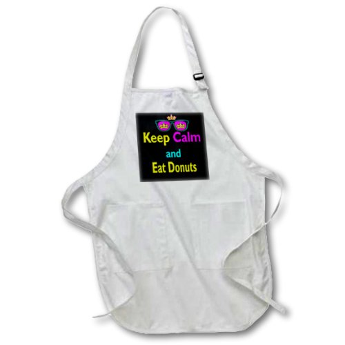 3dRose apr_116639_2 Cmyk Keep Calm Parody Hipster Crown Sunglasses Keep Calm and Eat Donuts Medium Length Apron with Pockets, 22 by 24"
