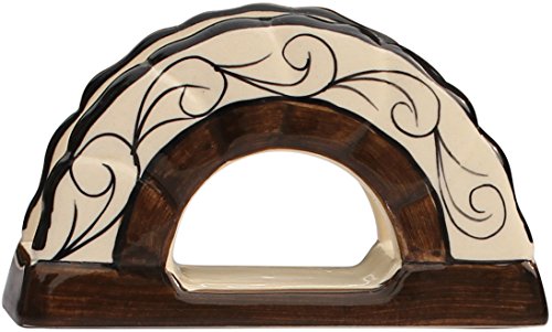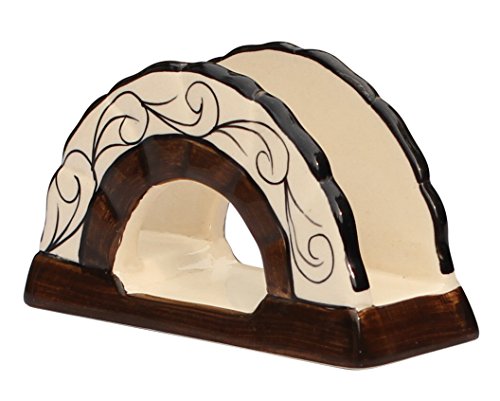 Hand-painted in durable cream, black and brown colors. Semi-circle in shape, this holder is made in ceramic and finished in glaze Semi-circle in shape, this holder is made in ceramic and finished in glaze