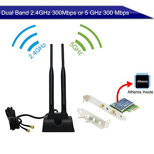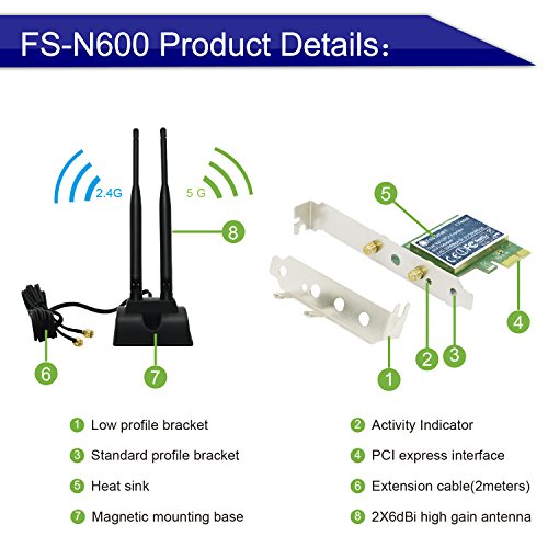 Feb Smart Wireless Dual Band N600 (2.4GHz 300Mbps or 5GHz 300Mbps) PCI Express (PCIe) Wi-Fi Adapter Network Card with 12dBi High Power Antenna Kit for Desktop Computers (FS-N600 Pro Edition)