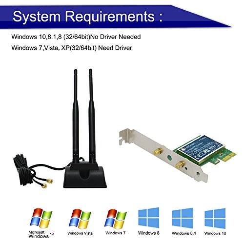 - 4. Compatible with Windows10,Windows8.1,Wondows8,Windows7,Windows Vista, Windows XP(32/64bits)system. Works with PCI express X1,X4,X8,X16 slot. Low profile and standard profile bracket inside works with both mini desktop host and standard desktop host.