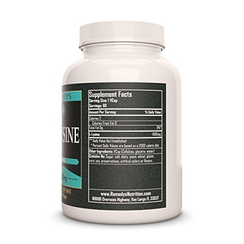 -. Title : L-Lysine Remedys Nutrition MEGA STRENGTH Vegan 1,000 mg / 60,000 mg per bottle Vcaps