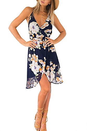 Feature : Material: Polyester / V neck, Sleeveless, Backless, Irregular hem / Color: floral print / Package included: 1 * Dress / Please check your size with our ASIA SIZE CHART before you buy it . Size may be 2cm/1 inch inaccuracy due to hand measure. Color may be little different due to monitor