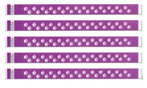 -. Title : 500 Purple Paw P.R.Int Tyvek Wristbands - 3/4 " Width