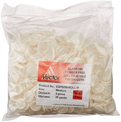 Studio : Total Source Manufacturing Publisher : Total Source Manufacturing Binding : Misc. Product Description These cost-effective finger cots provide excellent protection from skin salts, flakes, oils and other particulates. Ideal for use in small parts handling where a full glove is not needed, DI washed powder-free, the thickness of these cots is a mere Nitrile which is manufactured to provide the lowest levels of particulates and extractable possible. Nitrile is inherently anti-static. 20 bags per case. 0