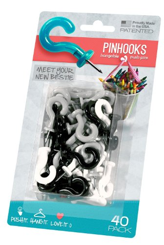 -. Title : Pinhooks Value Utility Assortment Push Pin 40-Pack Wall Hooks, Black/White/Grey