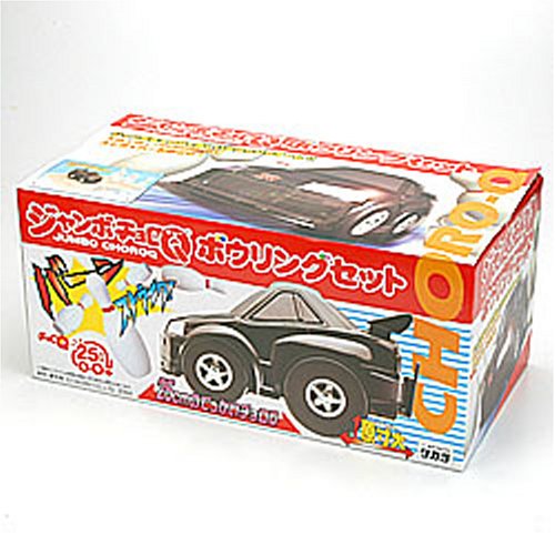 イベントで親子に大人気のジャンボチョロQのボウリング競技が商品になって登場。スペシャルカラーのジャンボチョロQ、ボウリングピン6個と紙製のレーンシートつきのセットで、買ってすぐにポウリングゲームが楽しめる。ジャンボチョロQの全長は25cmのビッグサイズ。