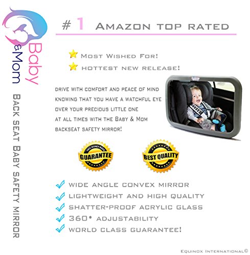 #1 Back Seat Mirror - Baby & Mom Rear View Baby Mirror - Easily Watch your Precious Child In-Car - Adjustable, Convex and Shatterproof Glass