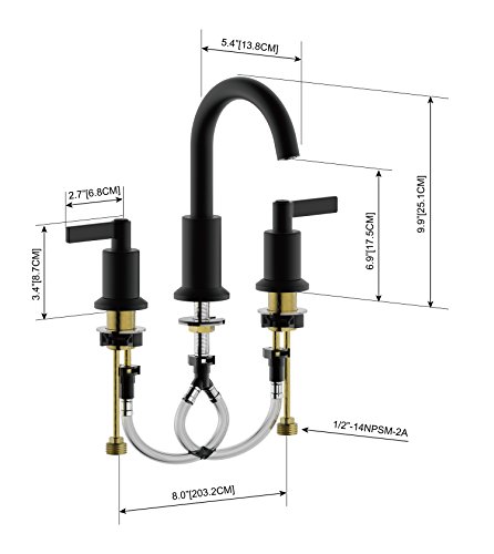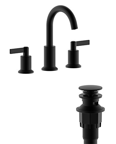 Derengge LFS-0188-MT 8” Two Handle Widespread Bathroom Sink Faucet with Pop up Drain, Meets UPC cUPC NSF AB1953 Lead Free, Matte Black