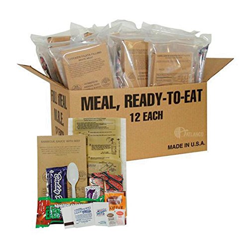 -. Feature : Made with high quality military Spec components / Each case contains: 12 meals; minimum of 4 main dish flavors, 3 of each / Each meal contains: main dish entree, side dish, snack, dessert, beverage powder, and condiments / Meals are fully cooked and do Not require additional water / Easy to prepare and storable for up to 5 years when stored at room temperature