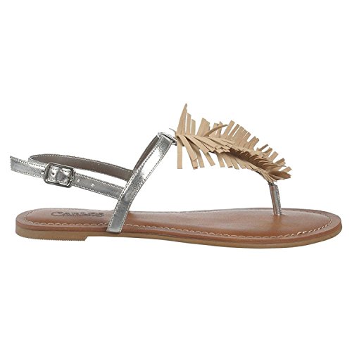 Studio : Carlos by Carlos Santana Publisher : Carlos by Carlos Santana Binding : Apparel Product Description Accented with a playful pom-pom fringe to contrast its sleek straps, the Carlos by Carlos Santana Finley thong cuts a stylish figure under the sun. Featuring an upper of faux leather with an adjustable heel strap for a snug fit, and a rolled toe thong for comfort, this womens thong sandal has a synthetic sole for reliable traction. 0